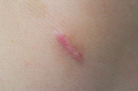 Les cicatrices peuvent devenir hypertrophiques c’est-à-dire rouges et qui démangent. Cette transformation apparait déjà 1 mois après l’intervention chirurgicale. A ce stade, il est possible de les traiter par des injections de corticoïdes intra-lésionnels, des pansements compressifs, du laser vasculaire avec une bonne réponse clinique en général.